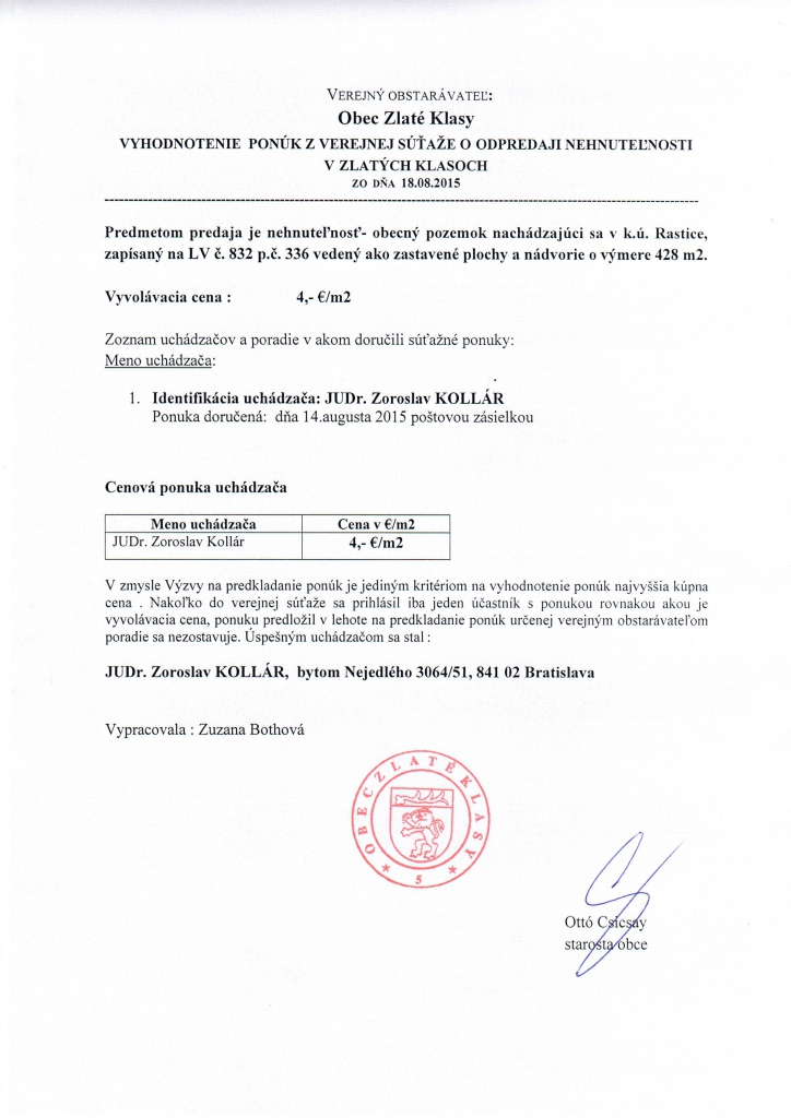 Obecný úrad Zlaté Klasy Poštová ulica 550/1 930 39 Zlaté Klasy